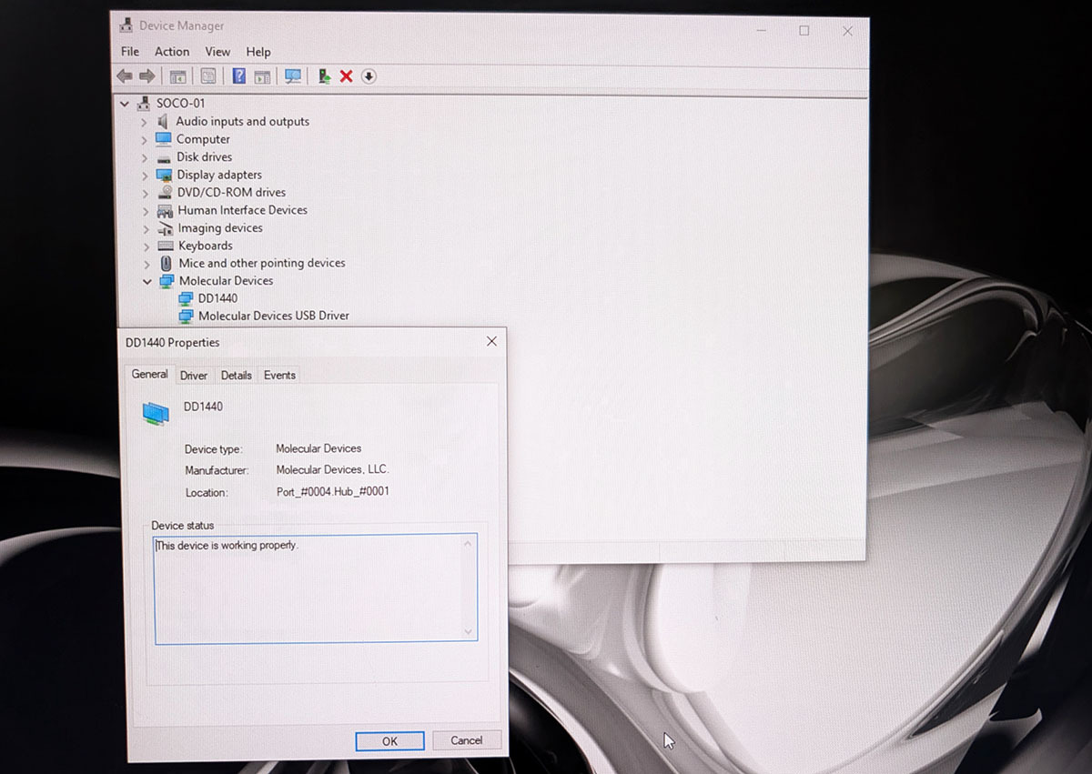 The Digidata 1440A Digitizer communicates with the host computer using USB 2.0. The module is a plug-and-play device, so it is automatically recognized by Windows. The Digidata 1440A Digitizer is supported on Windows systems by AxoScope 10 and by pCLAMP’s Clampex 10. AxoScope is an easy-to-use, full-featured data acquisition program for Windows that is included with the Digidata 1440A Digitizer.