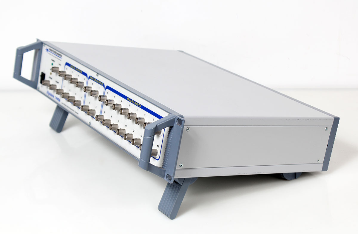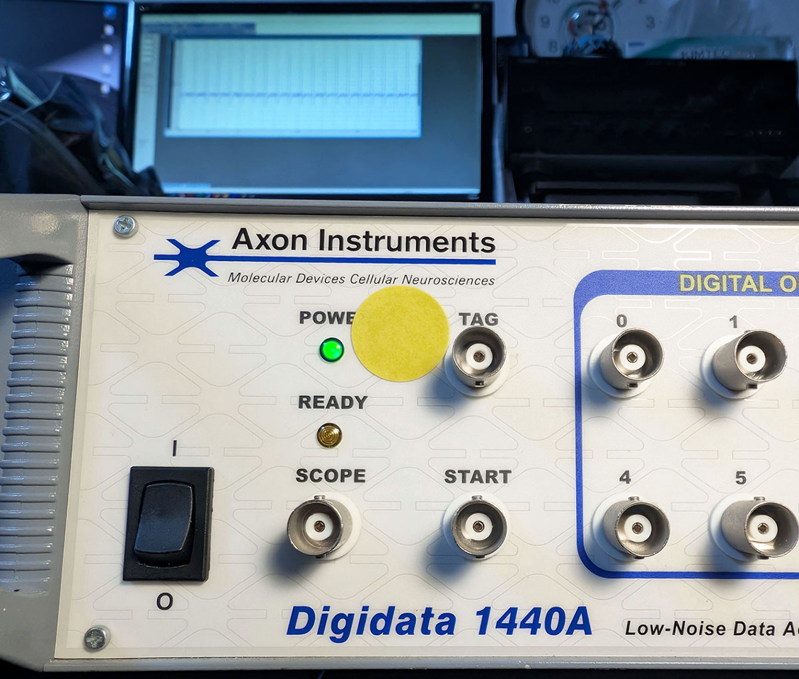 The Digidata® 1440A Low-noise Data Acquisition System is a high-resolution, low-noise digitizer intended for precision scientific applications. It is particularly designed for electrophysiology experiments, to send and receive signals from microelectrode amplifiers, and to interact with peripheral instruments such as solution changers and stimulators.