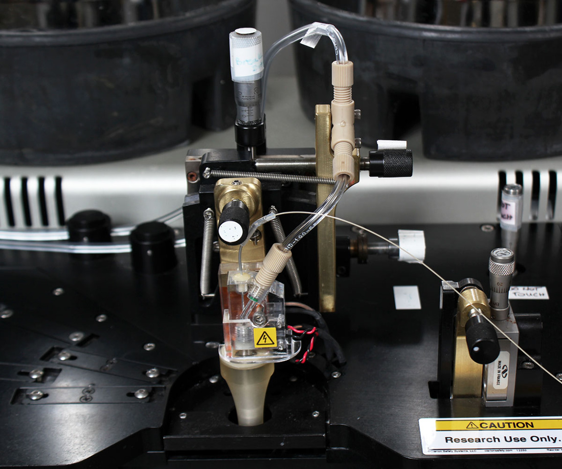 Facility Testing: System powered and went through initialization, signaling a successful connection between cytometer and server computer (inside controller). We then powered the acquisition PC, logged in and successfully connected to the server computer and cytometer. Test signals such as plate movement control, camera view, illumination and purge functions were all positive, eliciting expected responses from the cytometer. Camera view in the sorter screen was visible when illuminated and red laser reflections were visible near the tray. We do not have the necessary materials or knowledge to test full clinical operations but the framework of the overall system appears to be solid.