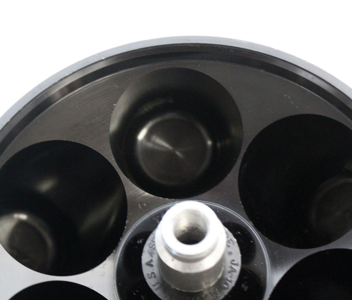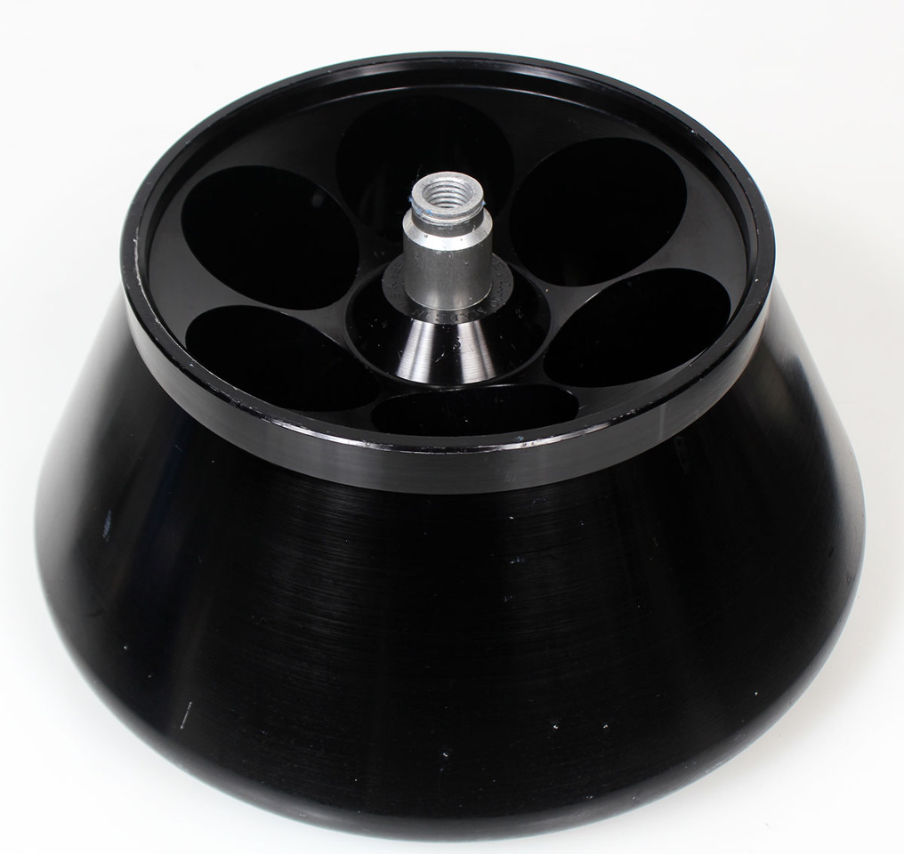 The JA-10 fixed angle rotor, rated for 10 000 rpm, is designed to centrifuge up to six 500-mL containers at a 25-degree angle to the axis of rotation. Used in Beckman Coulter J2, J6, and Avanti J series centrifuges,1 the rotor develops centrifugal forces that can efficiently pellet bacterial cells from large volumes, or particles from tissue homogenates. Up to 3 liters of sample and gradient can be centrifuged per run.