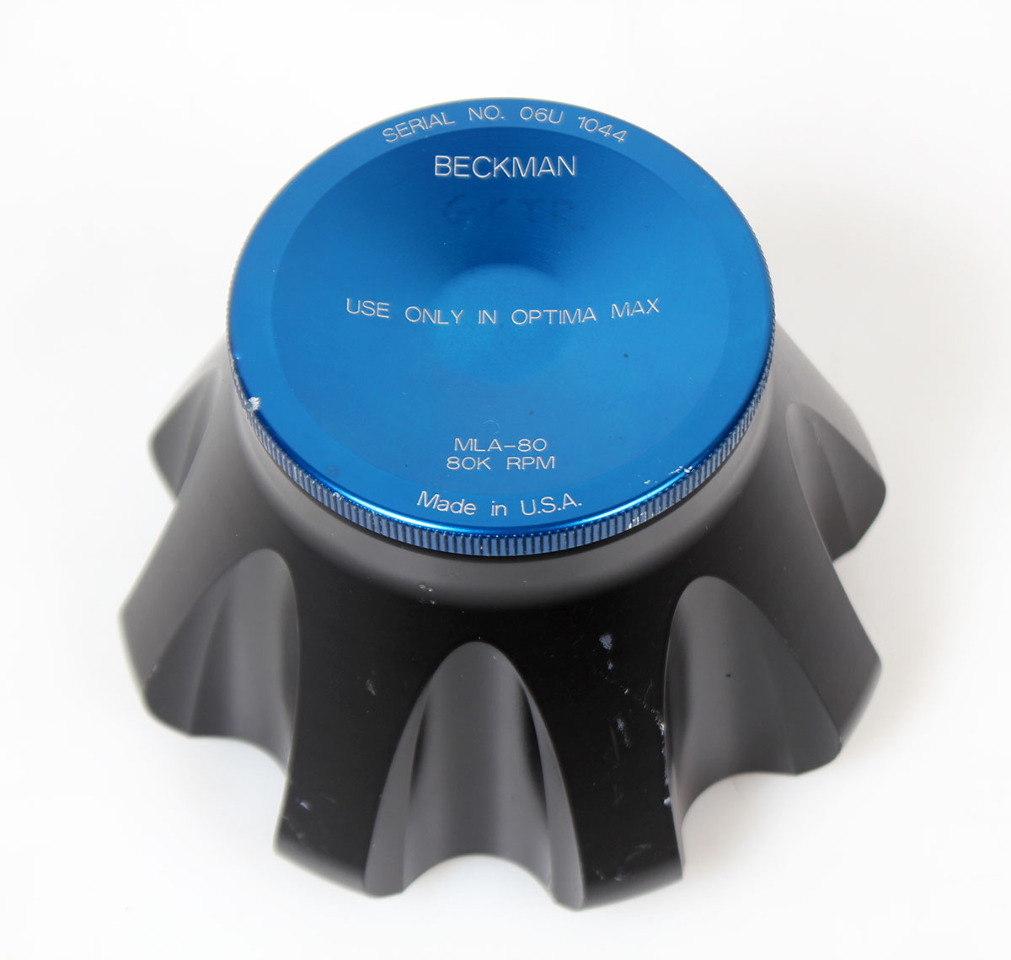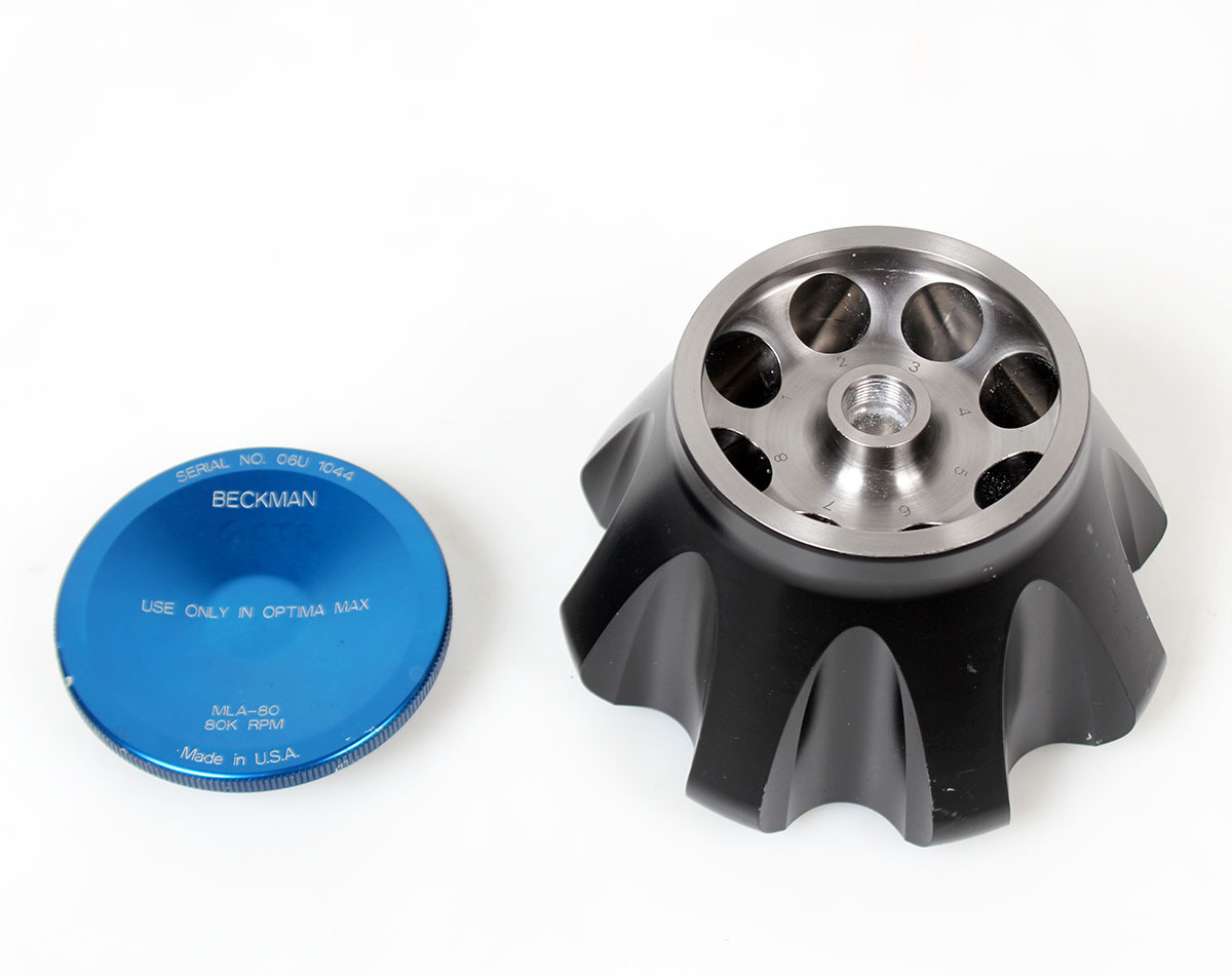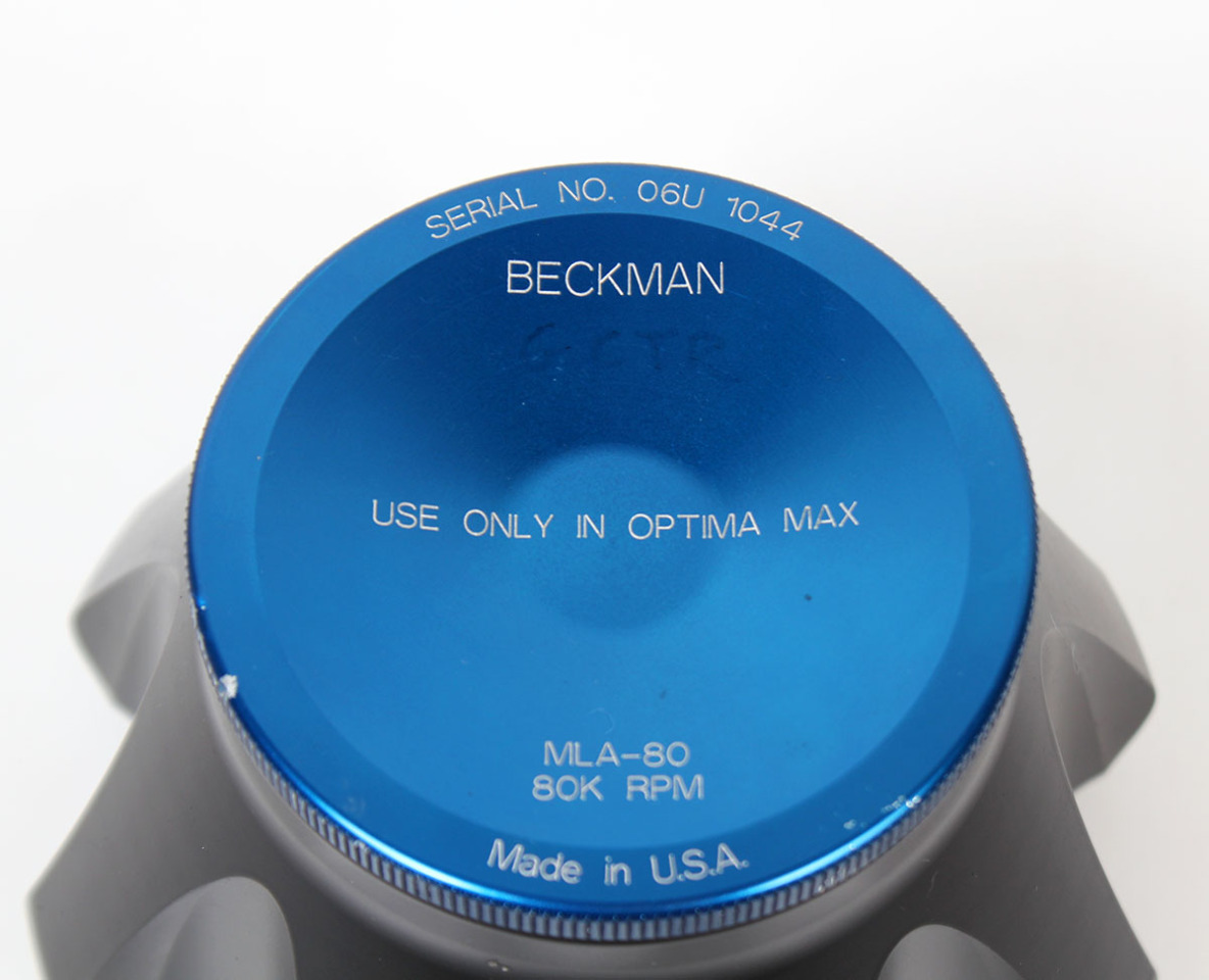 The Beckman Coulter MLA-80 is a high-performance, fixed-angle rotor designed for ultra-high-speed applications in the Optima MAX series ultracentrifuges. Engineered from high-tensile titanium, this rotor is capable of reaching speeds up to 80,000 RPM, generating the extreme centrifugal forces required for the pelleting of small particles, viruses, and subcellular fractions. Its 8-place design and efficient k-factor make it a versatile workhorse for molecular biology and proteomics research.