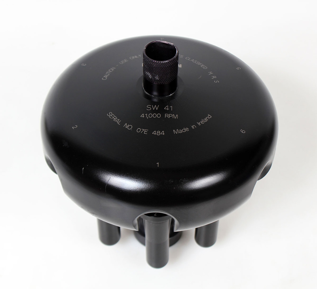 The Beckman Coulter SW 41 Ti is a high-performance swinging-bucket ultracentrifuge rotor designed for the Optima series. Constructed from high-strength titanium, this rotor is optimized for rate-zonal and isopycnic separations. The swinging-bucket design allows tubes to move from a vertical to a horizontal position during acceleration, ensuring that gradients remain undisturbed and providing superior resolution for delicate biological samples.