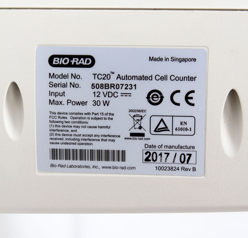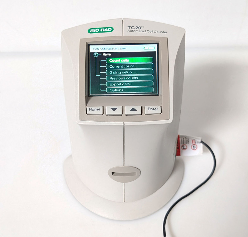 The Bio-Rad TC20 is an automated cell counter that provides accurate and reproducible total cell counts and viability assessments in a single, simple step. Utilizing innovative auto-focus technology and a sophisticated digital image analysis algorithm, the TC20 eliminates the subjectivity of manual focusing and reduces user-to-user variability. It is designed to count mammalian cells (6–50 µm) in less than 30 seconds, making it an essential benchtop tool for high-throughput laboratory environments.