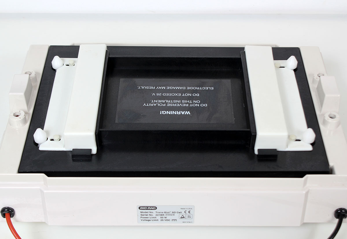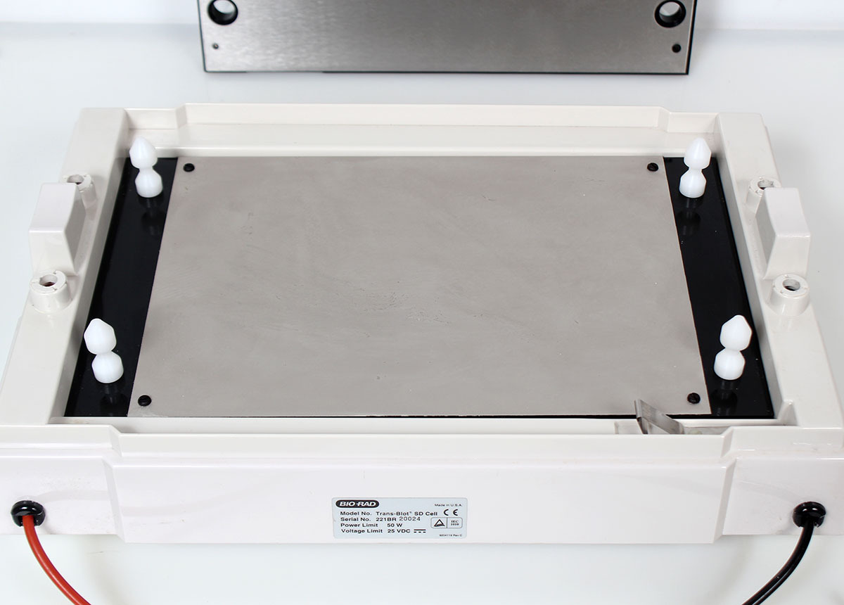 Trans-Blot SD semi-dry transfer cell allows fast, efficient, and economical blotting. Using a platinum-coated titanium plate as the anode and a stainless-steel plate as the cathode, the Trans-Blot SD cell transfers in a horizontal configuration without a buffer tank or gel cassettes.