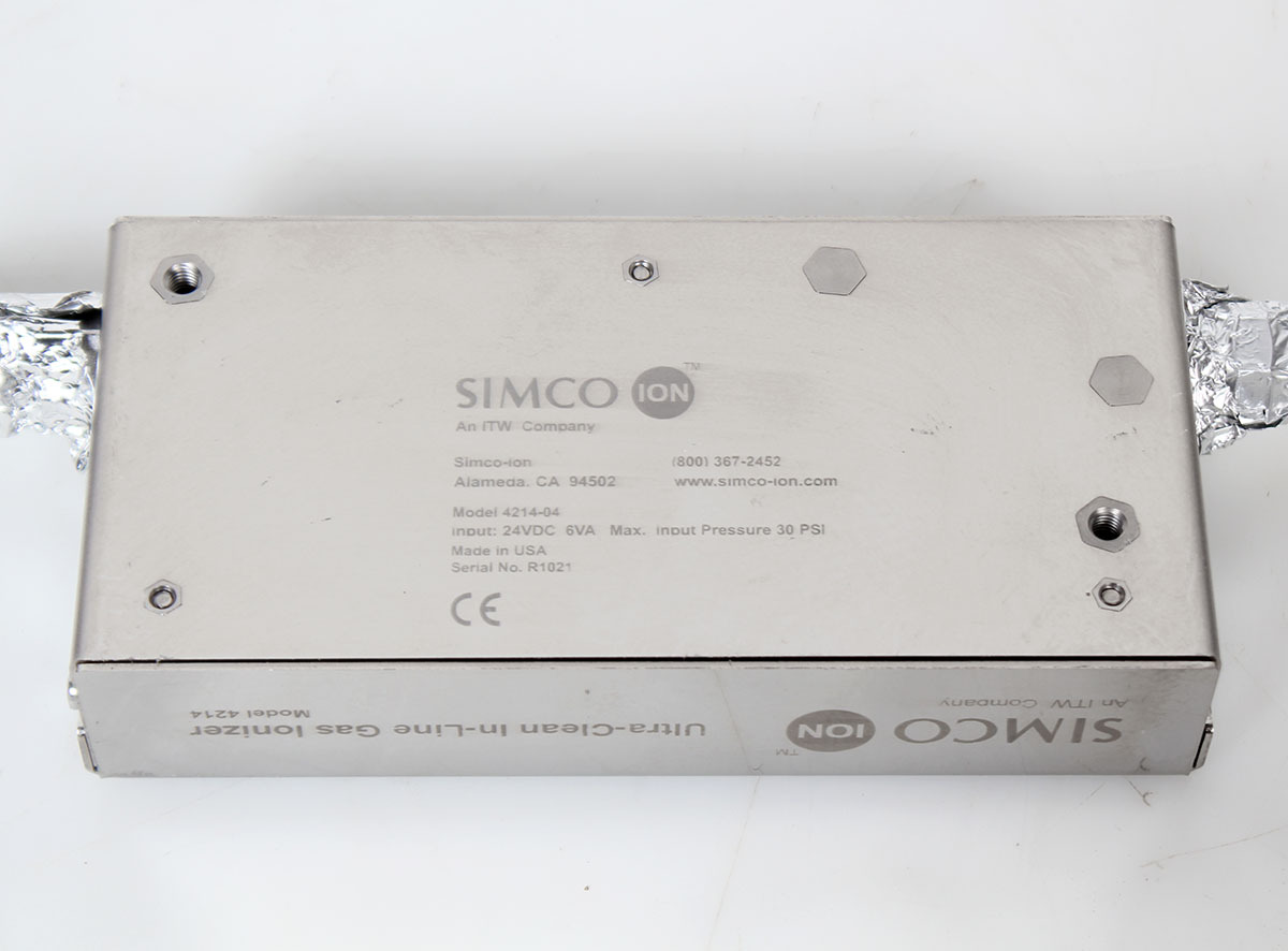 Simco-Ion, Technology Group's In-line Ultra-clean Nitrogen Ionizer Model 4214 is specifically designed to ionize a nitrogen gas flow in ultra-clean semiconductor or other high purity processes. Unlike other nitrogen ionizers which depend on the trace gases in the nitrogen stream to produce ionization, this state-of-the-art product ionizes nitrogen molecules using a small but efficient power supply.