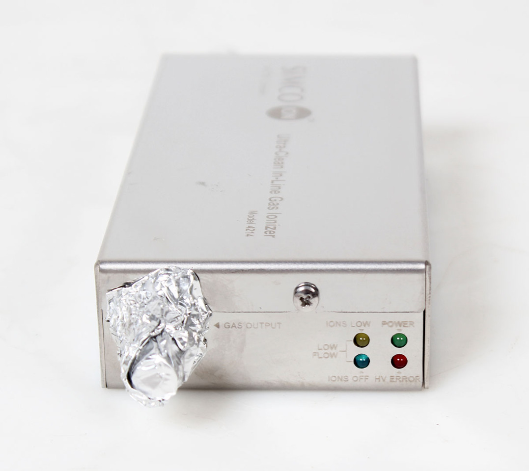 - Alarms indicating low ion output (maintenance required), high voltage power supply failure, and low gas flow