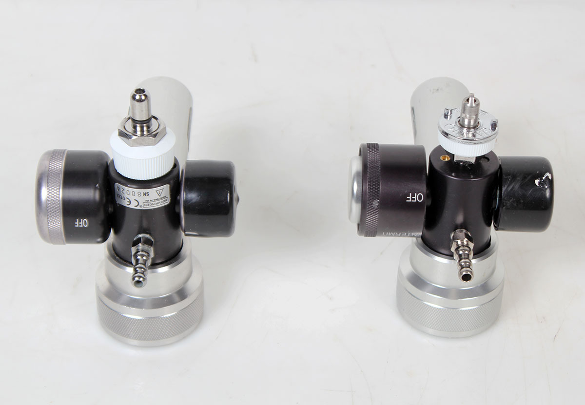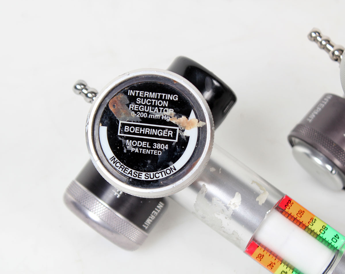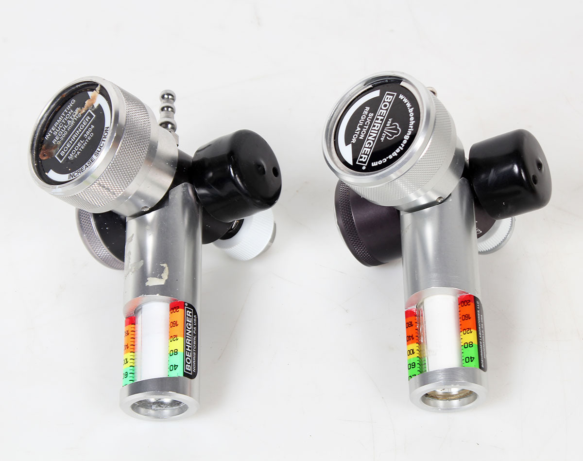 Lot of 2 decommissioned suction regulators from a premiere state facility. These are untested and of differing configurations or some missing parts as shown.