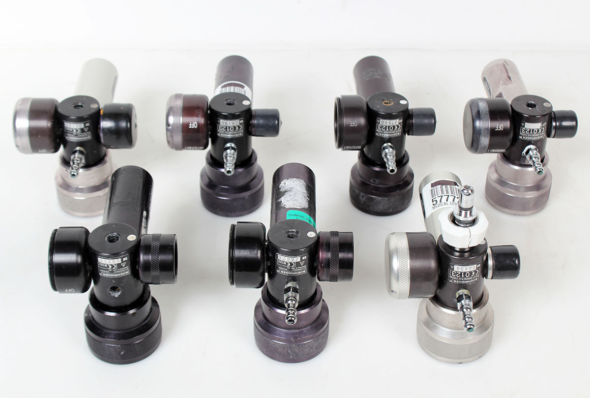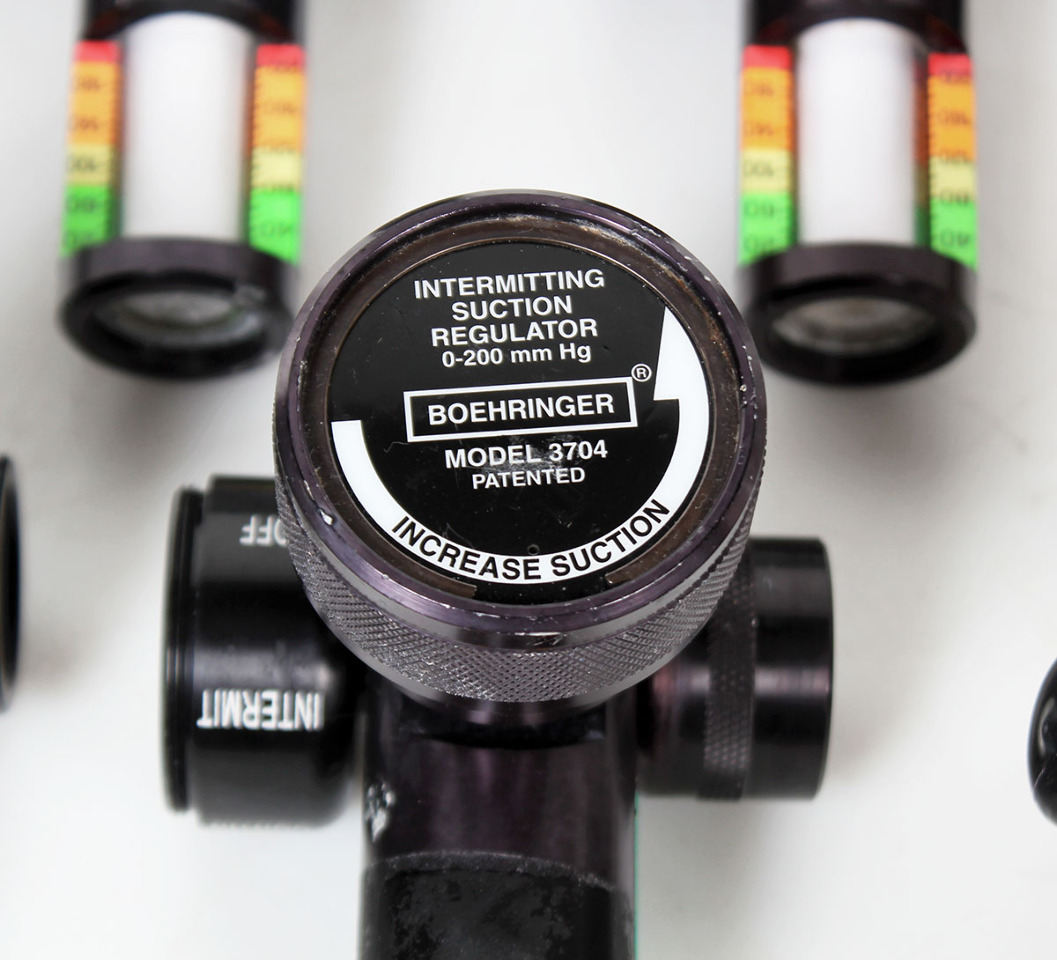 Lot of 7 decommissioned suction regulators from a premiere state facility. These are untested and of differing configurations or some missing parts as shown.