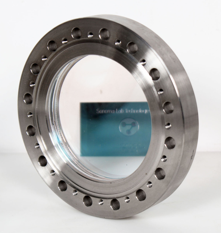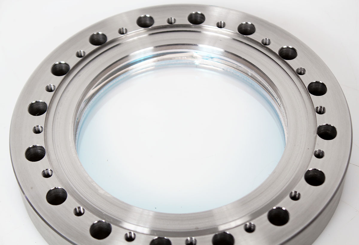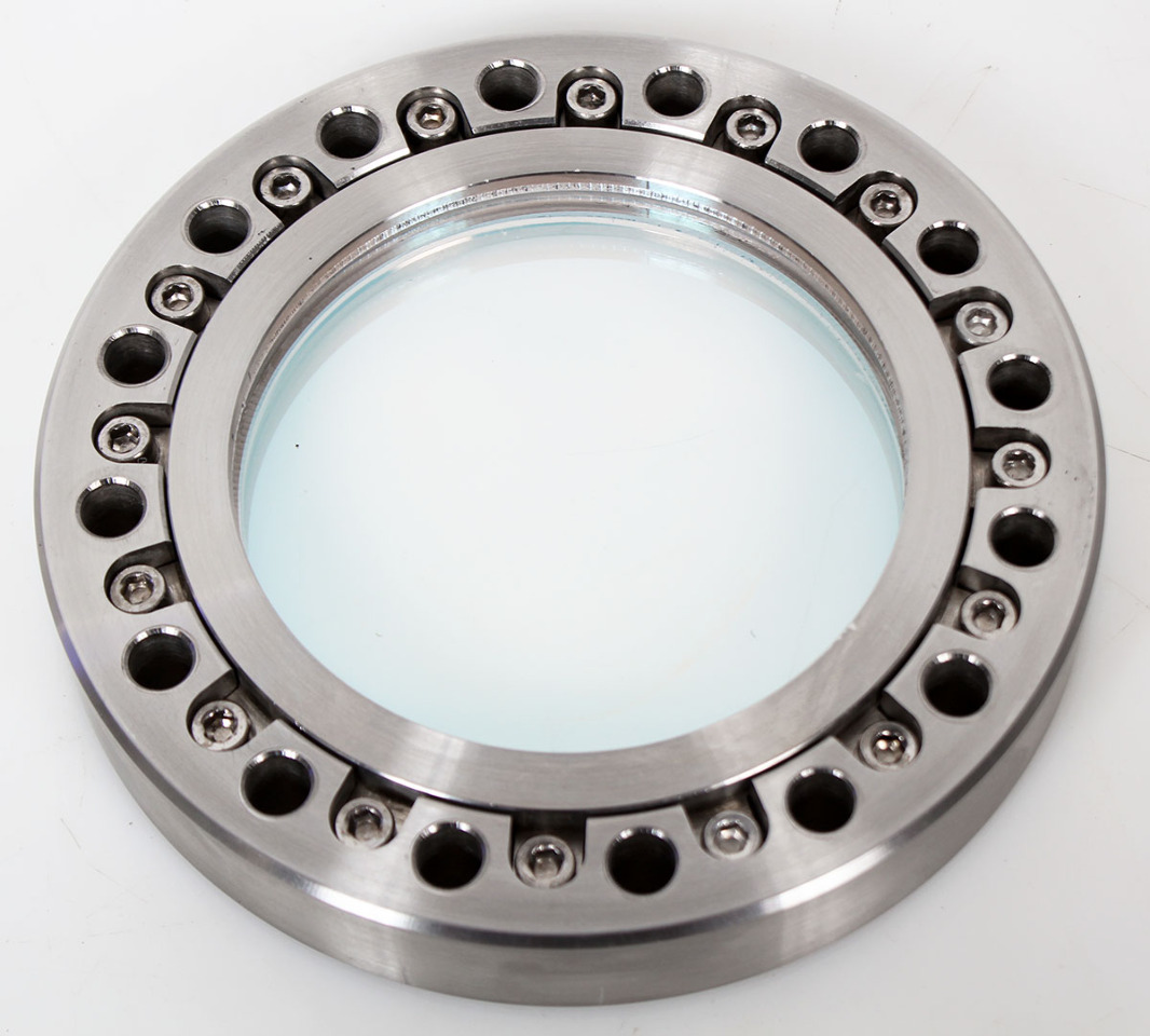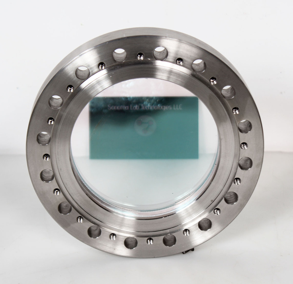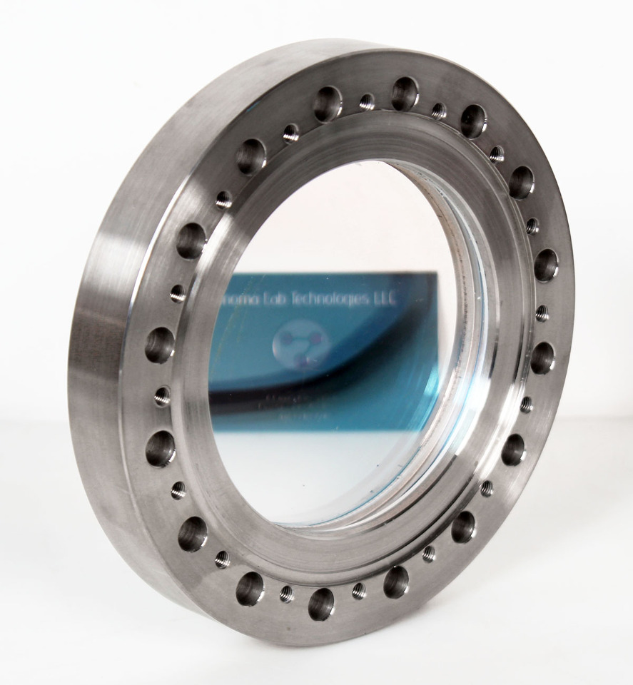 Nice viewport blank in excellent condition, as shown in photos. This ultra high vacuum, SS304 vacuum viewport flange is extremely clean. The knife edge is excellent. Glass is blemish free and has a lens coating that produces a light blue hue. It is also removeable/replaceable.