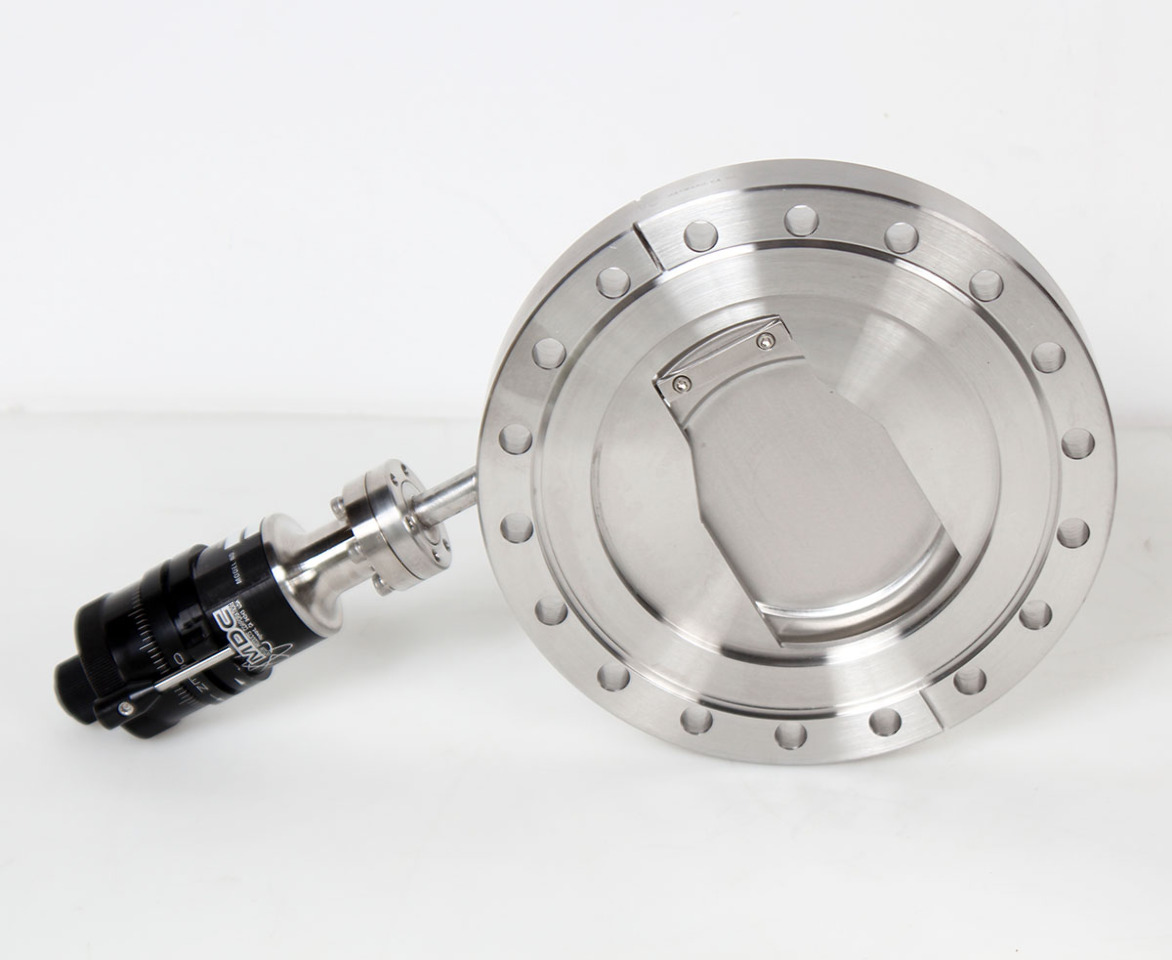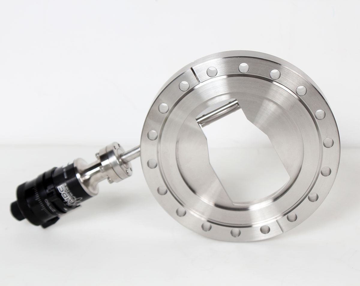 This MDC VPS Viewport Shutter is a 6.75 inch OD (DN160CF 171 mm) unit for large-aperture vacuum systems requiring complete viewport protection. The pivoting flapper is actuated through a bellows-sealed rotary drive allowing precise partial and full openings. With a CF metal seal interface and stainless steel construction, it is bakeable to 230°C and provides long-term UHV performance for vacuum coating, plasma processing, and analytical equipment.