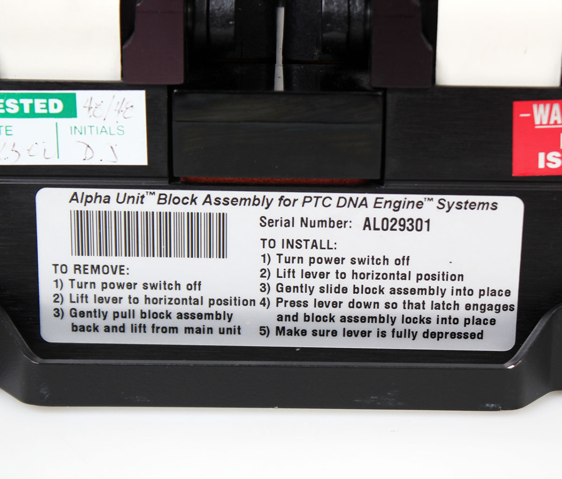 Clean and in excellent condition. This dual-48 well block was thoroughly tested. Heating, cooling and lid heat functions were individually tested and verified during extended runs.