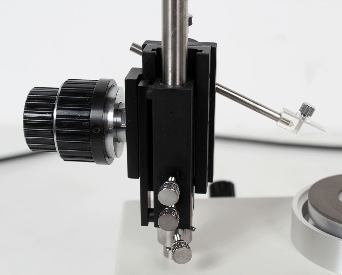 This grinder is ideal for grinding micropipette tips, thanks to its employment of a special motor which is designed to minimize irregular movements of the grinding plane. In addition, this model provides stable performance at all revolution speeds -- from low for more precision to high for faster grinding. An easily operable coarse and fine movement coaxial manipulator is equipped for vertical operation of the microneedle, which also enables very precise grinding. A protractor is mounted on the needle holder fixing section, making it easy to set the required grinding angle, and an adaptor is attached for vertical grinding. New water filling and drainage mechanisms are installed to prevent clogging or the accumulation of shavings, making the apparatus as a whole much easier to use.