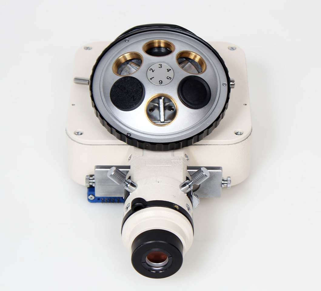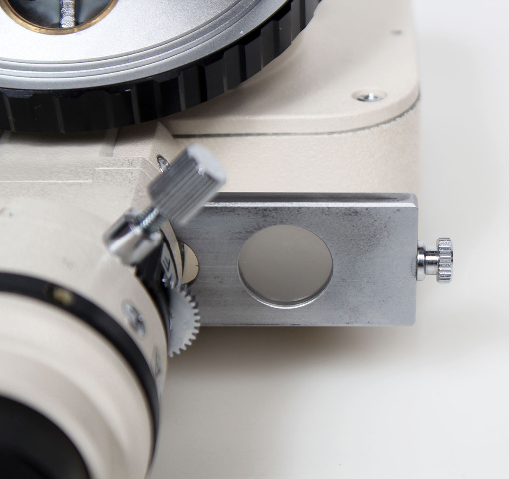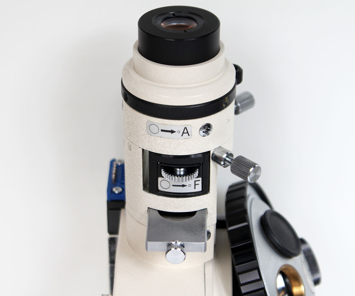 Clean and in good condition. Sliders and adjustments all functional. Included nosepiece turret for RMS threaded objectives rotates easily and clicks in place at each position. Comes as shown without filter cubes.