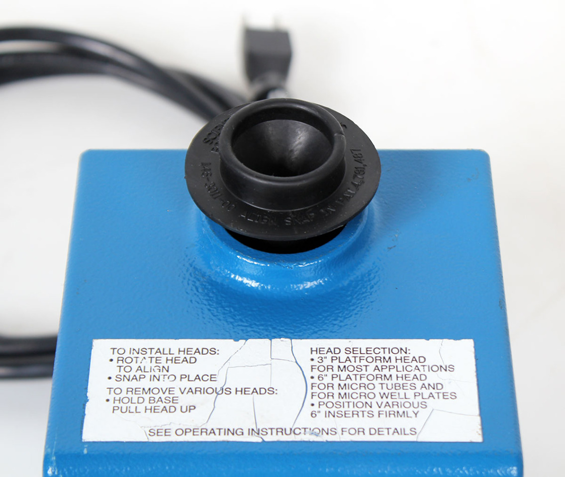 Accommodates a wide variety of tubes, vials, plates, or flasks. Snap-on interchangeable mixing heads extend your options beyond the standard cup or platform. A speed selector allows gentle shaking up to high-speed vortexing (600-3200 rpm). The power switch lets you select either hands-free continuous action or Touch On control. Supplied with a cup head and 3" platform (not included with this listing).