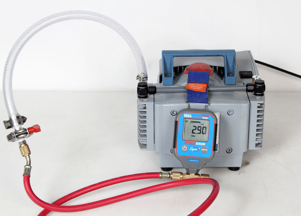 Clean and in excellent working condition. The pump achieved 2.9 mBar within seconds on our test gauge. All operation was smooth and quiet, and the unit stayed cool during extended operation.