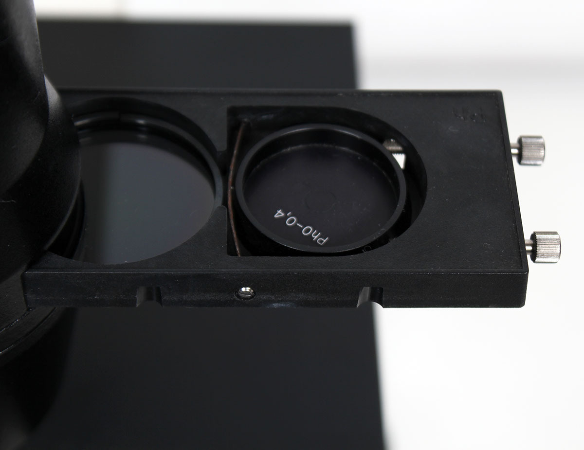 - Condenser: 0.4 N.A. (with phase sliders for brightfield, Ph1, Ph2).